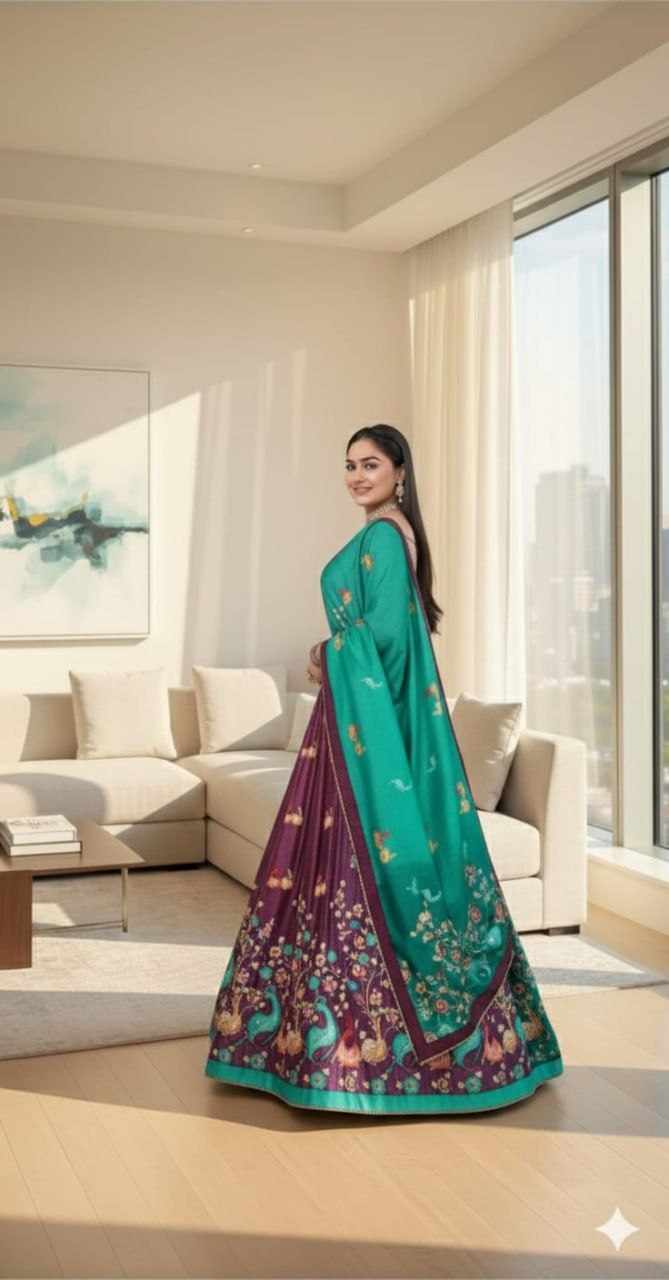 | Name : | PIYU 18-2 Silk Digital print Wine Colour Lehnga |