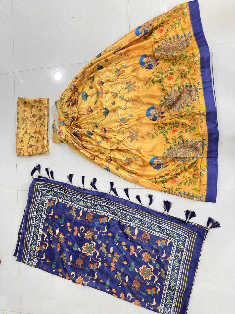 | Name : | PIYU 21-2 Silk Digital Print Yellow Lehnga |