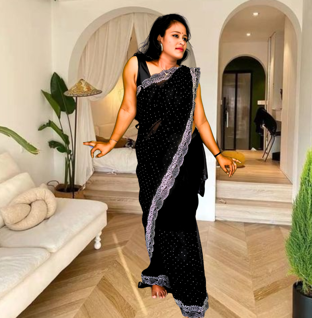 | Name : | S4s Black Karishma Siroski Stones Lace Georgette Party Wear Saree |